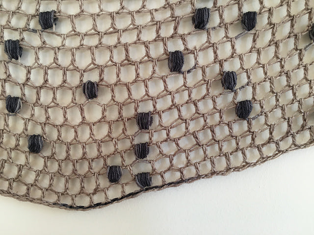 Crescent Puff is a reversible crochet shawl and uses one skein of fingering weight yarn.