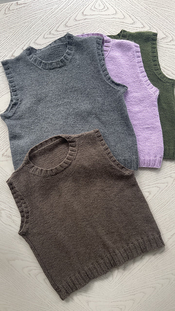 Hello Friend is worked top down on 4.5 mm / US 7 needles. First the top of the back is worked flat while shaping the shoulders and then the armholes. The back stitches are placed on hold while the front is worked. Stitches are then picked up on either side of the back shoulders while shaping the front neckline and then armholes. The two pieces are then joined to begin working in the round. A purl stitch between the front and the back pieces adds the illusion of a side seam.