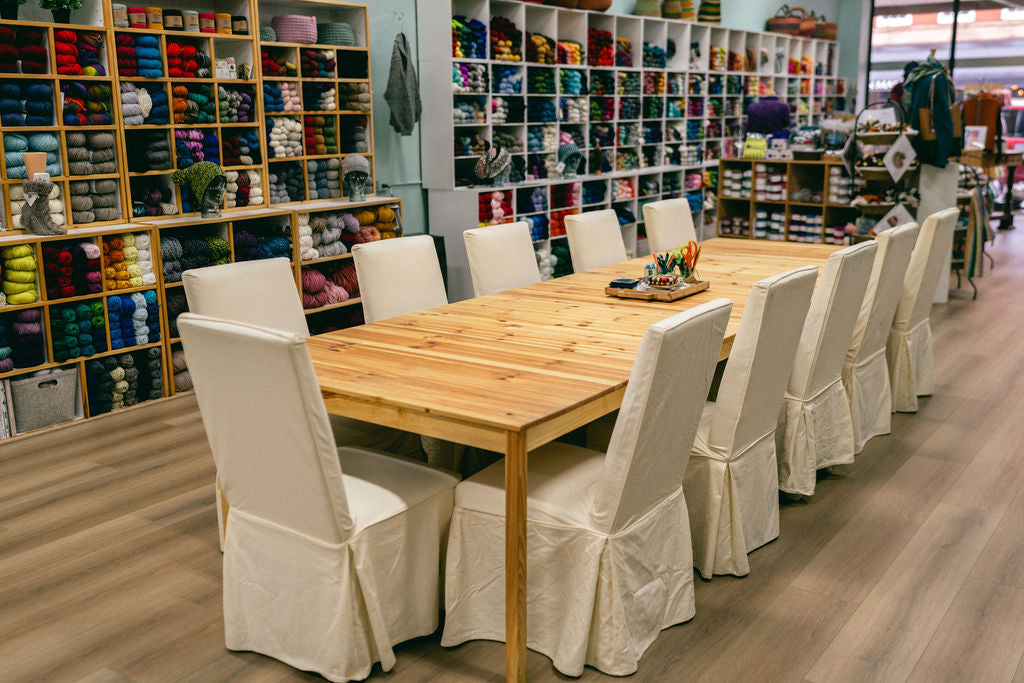 One of our big passions is creating space to build Community. We have several dedicated days and times ... but always feel free to come in and sit down at the table with your project!