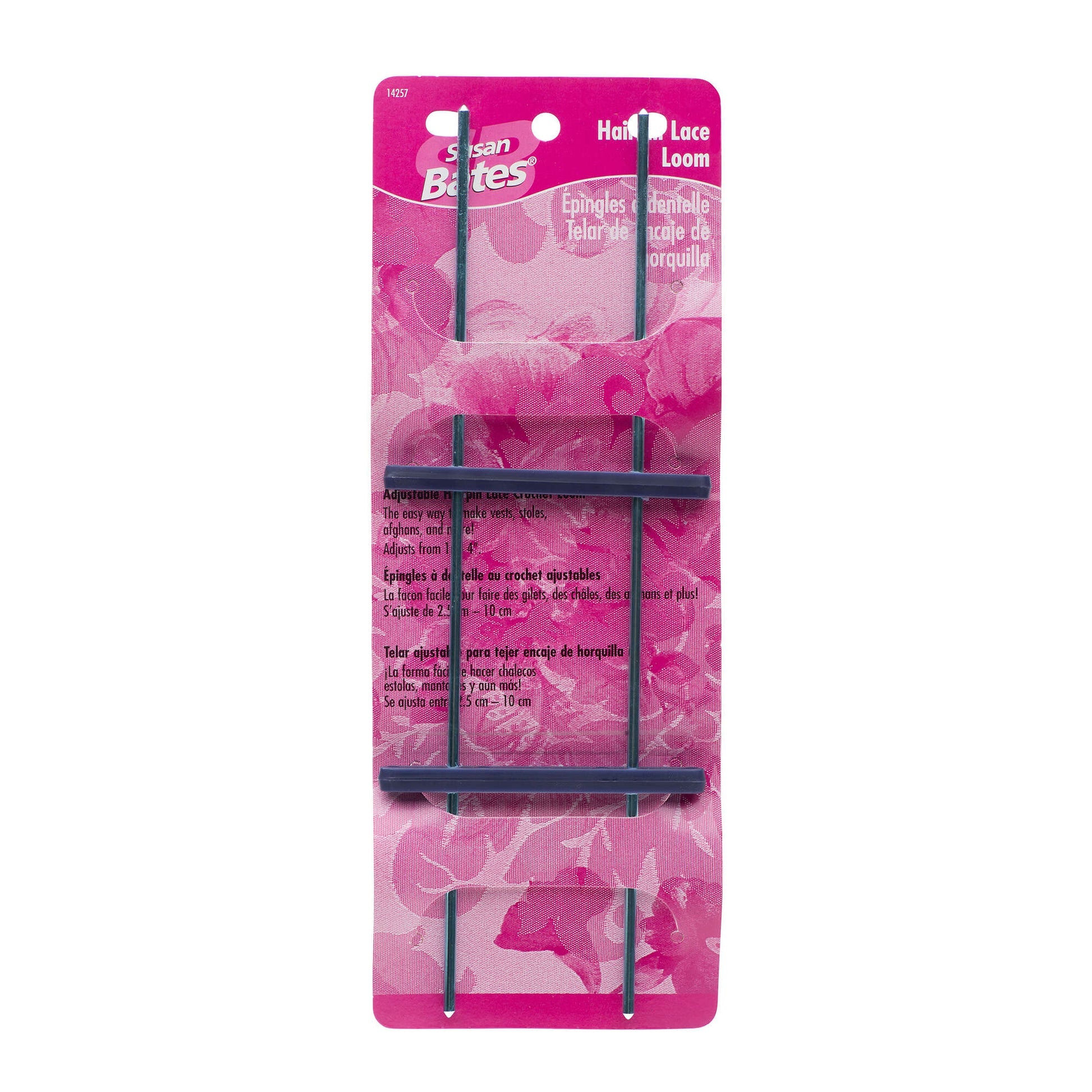 Susan Bates Adjustable Hairpin Lace Loom is the easy way to make vests, stoles, afghans and more! This loom measures 12" long and is adjustable to widths of 1", 1-1/4", 1-3/4", 2", 2-1/8", 2-1/2", 2-7/8", 3-1/4"and 4". Packaging includes tri-lingual instructions.